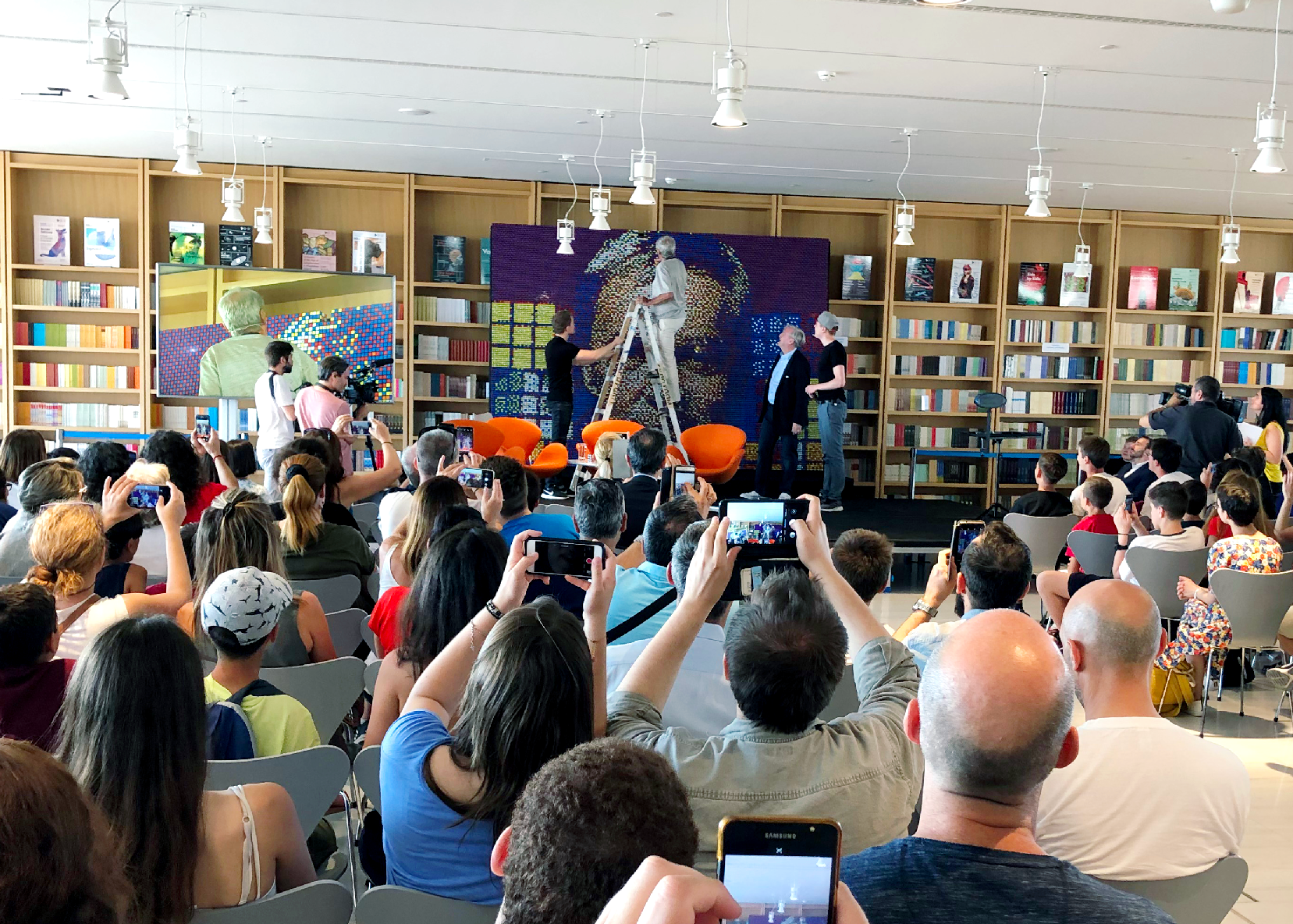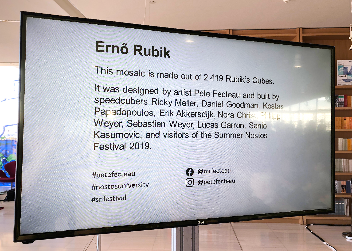 Pete had the pleasure of designing a 2419 cube mosaic featuring the inventor of the Rubik's Cube, Ernő Rubik. This is the second mosaic he's created of Ernő, the other being titled "Ernő" can be viewed here. This mosaic was designed for the Summer Nostos Festival in Athens Greece.