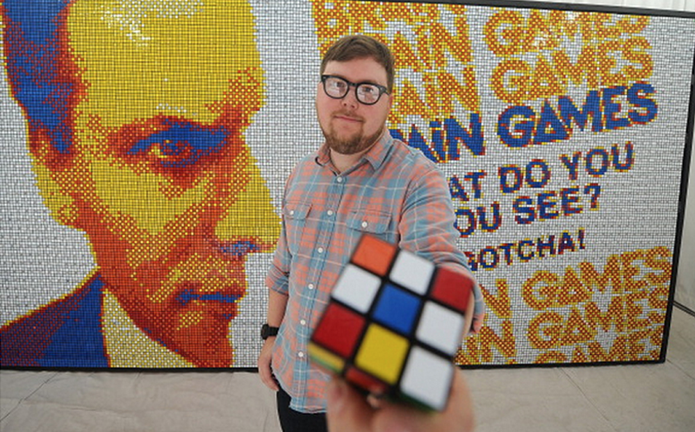 Pete was hired by National Geographic and Mullen to create a mosaic of Houdini using 3,612 Rubik's Cubes. The mosaic was used to promote a new show called Brain Games.