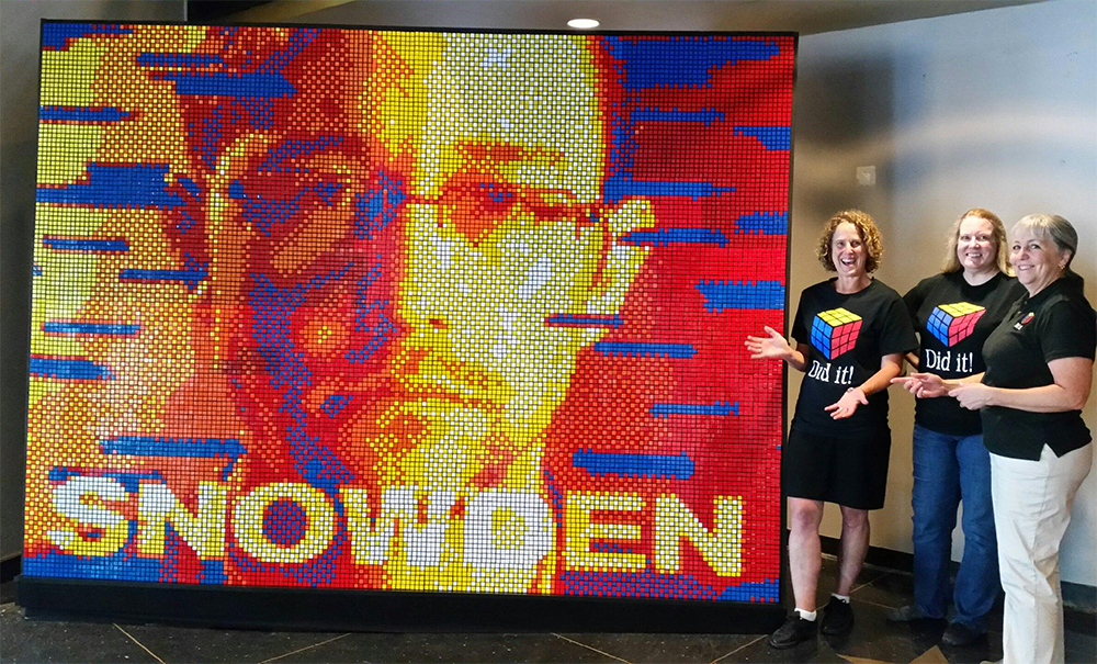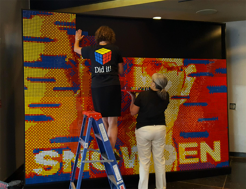 Pete designed this 2,160 cube mosaic to be built and displayed at the premier of the Snowden biopic. The mosaic was assembled by Holly Riehl and an assistant then installed in the lobby of the Lincoln Center Theater.